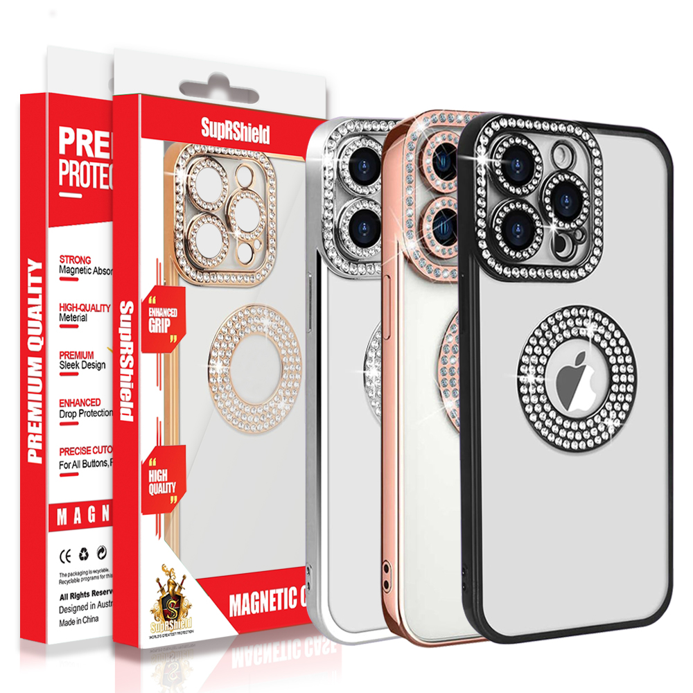 For Apple iPhone 15/15 Plus/15 Pro/15 Pro Max MagSafe Magnetic Diamond Rhinestone Glitter Crystal Bling Camera Lens Protector Cover